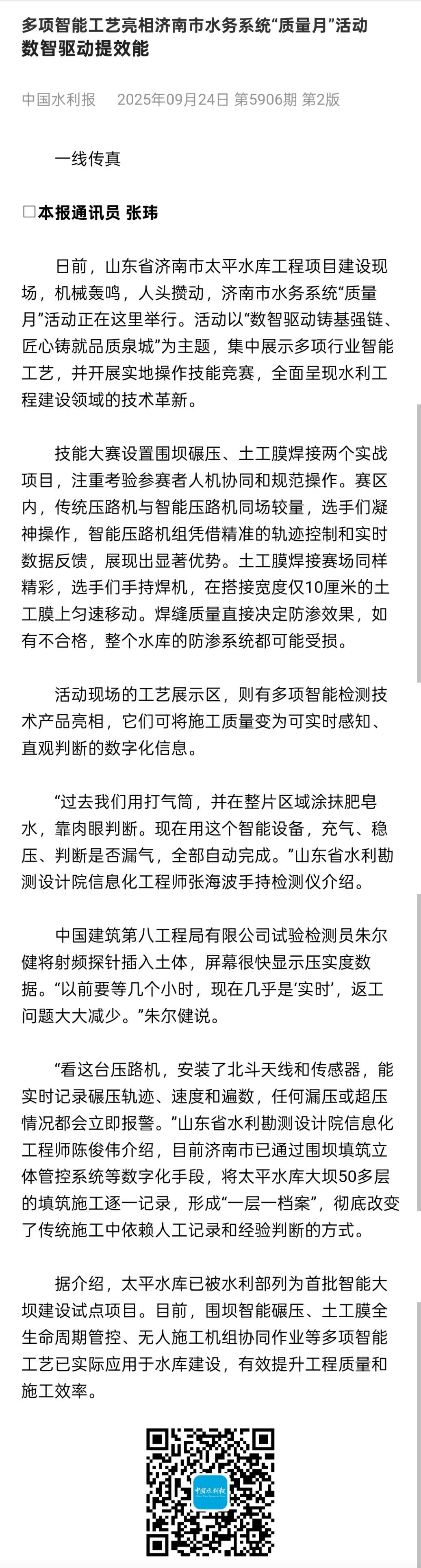 下一步,谈球吧集团将继续以高标准完成项目工程建设,以此次济南市水务系统“质量月”活动为契机,推动太平水库工程在数字化转型及智能化管理等方面持续走深走实,促进太平水库工程高质量建设发展。